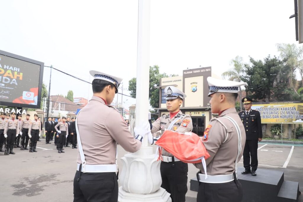 Upacara dipimpin oleh Kabag Ops Polres Kediri Kota Kompol Iwan Setyo Budi, S.H. selaku Inspektur Upacara.